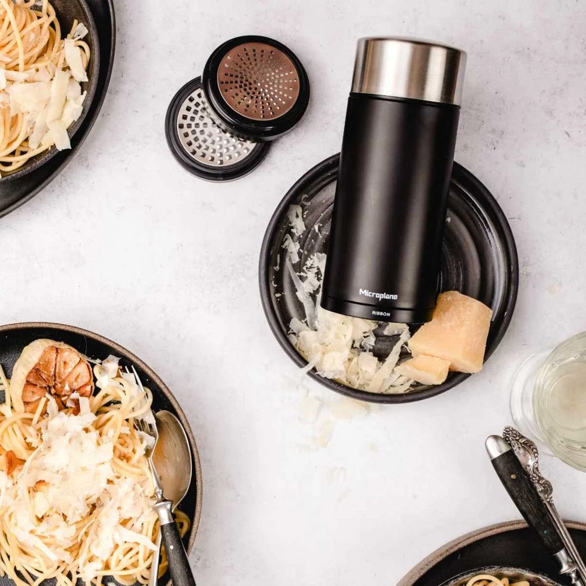 Mit den drei auswechselbaren mahlt, reibt und raspelt die Microplane Universal Mühle Eure Zutaten und Gewürze je nach Bedarf. Grobes Salz, Pfefferkörner und Muskatnuss können zum Nachwürzen bei Tisch fein gemahlen werden, während grobe Parmesanstreifen Eure Pasta als Topping veredeln. Sie ist durch drei Reibescheiben in fein, mittel und grob be
